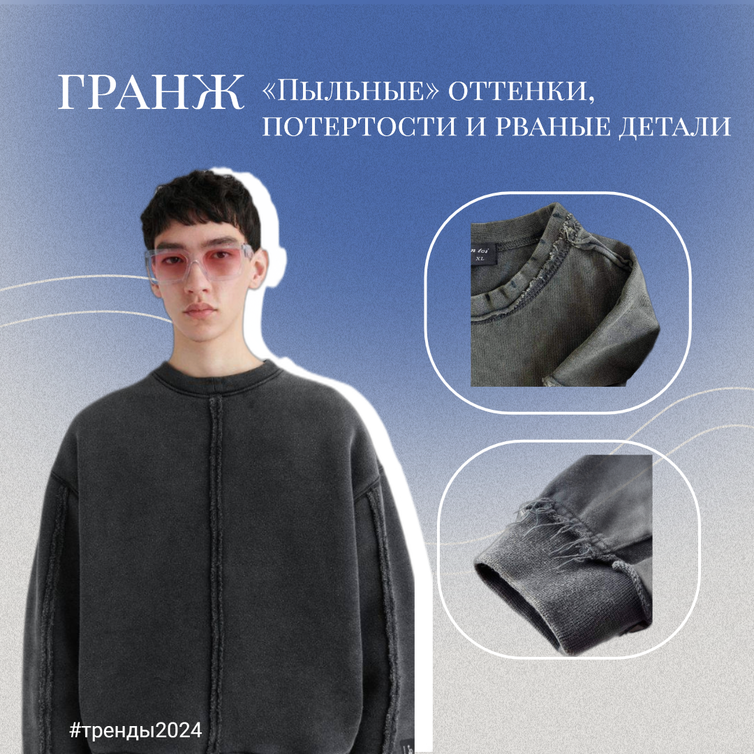 «Пыльные» оттенки, потертости и рваные детали, а также сочетания с эффектом лёгкой небрежности — все это включает в себя стиль гранж