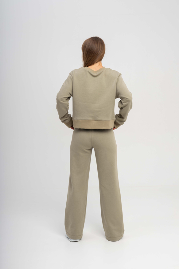 Повысьте свой стиль с этим укороченным свитшотом оверсайз! Спущенная линия плеча создает расслабленный и модный вид. Горловина обтачка из кашкорсе шириной 2,5 см обеспечивает комфортную посадку. Качественная отделка с киперной лентой на спинке гарантирует долговечность. Втачные рукава с рельефом спереди добавляют интересный дизайн, а манжеты и пояс из кашкорсе шириной 7 см обеспечивают уютную посадку. Расстрочка на плоскошовной машине гарантирует прочность.