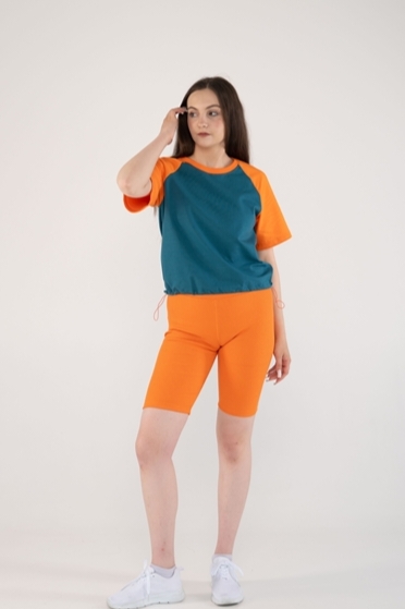 Женская укороченная футболка умеренного объема — это идеальное сочетание стиля, удобства и функциональности. Модель с рукавами реглан и низом вподгибку шириной 2 см обеспечивает свободу движений и комфорт в носке. Низ изделия оснащён кулиской с регулируемой резинкой и фиксаторами, что позволяет подстроить посадку под индивидуальные предпочтения.