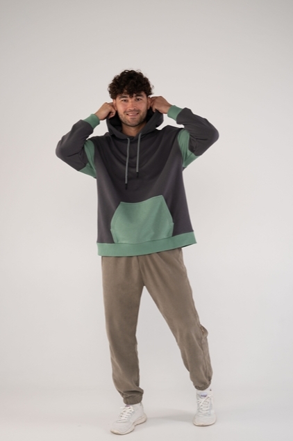 Широкая горловина обеспечивает комфорт при носке, а отстрочка по краям и укрепление киперной лентой гарантируют долговечность. На рукавах расположены контрастные вставки, а на полочке — акцентный карман кенгуру, который визуально дополняет дизайн и делает изделие функциональным. Для полноты образа можно подобрать шнурок любого желаемого цвета.