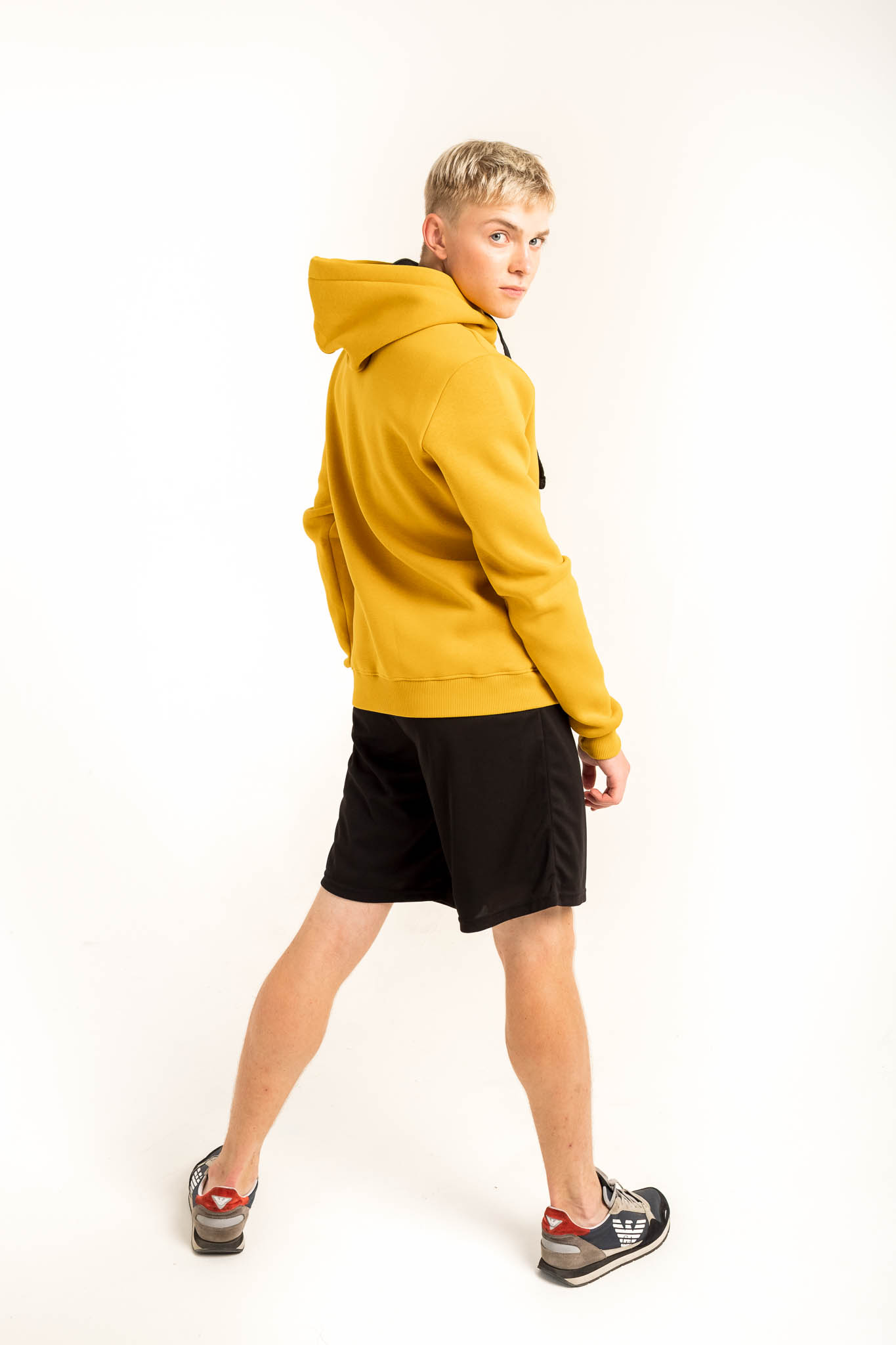 Верхняя часть капюшона отстрочена по среднему шву шириной 0,5 см — это подчёркивает аккуратность пошива. Застёжка на молнию также отстрочена с шириной шва 0,5 см, обеспечивая прочность и эстетичный вид. Длина изделия — до середины бедра, что делает худи универсальным: не слишком длинное, не слишком короткое — идеально для любого роста.